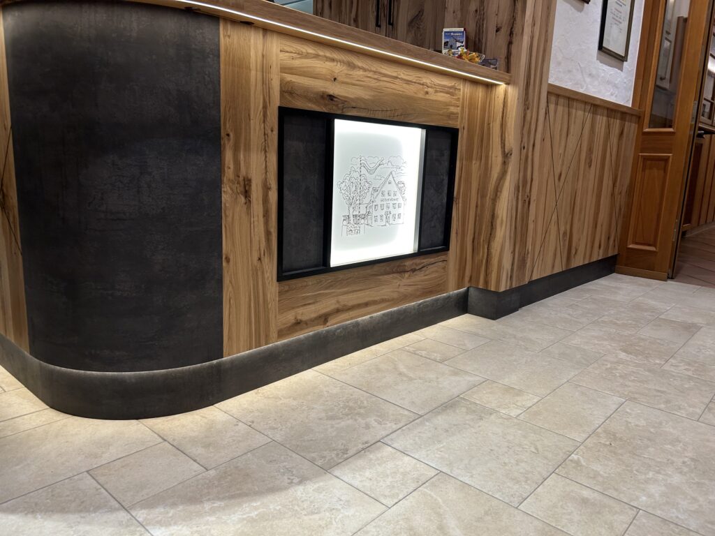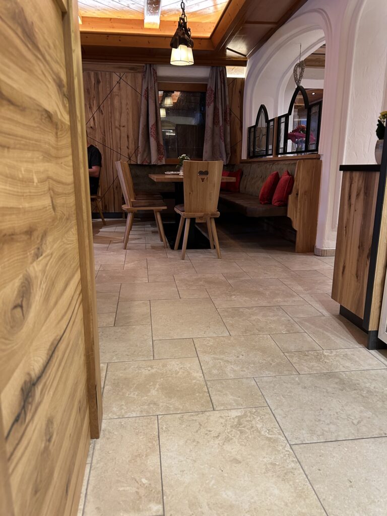 Fliesen in Natursteinoptik und traditionelle Gastfreundschaft vereint.